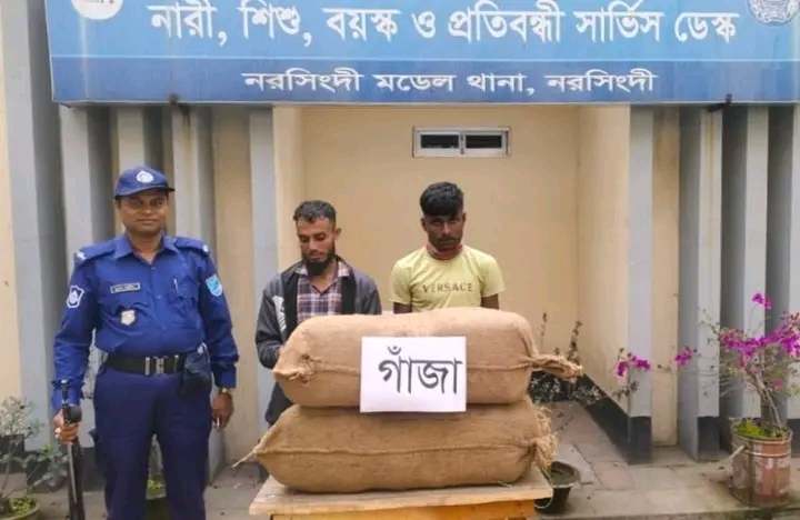 নরসিংদী সদর মডেল থানার মাদক বিরোধী সফল অভিযান ৪০ কেজি গাজা সহ একটি বাস আটক